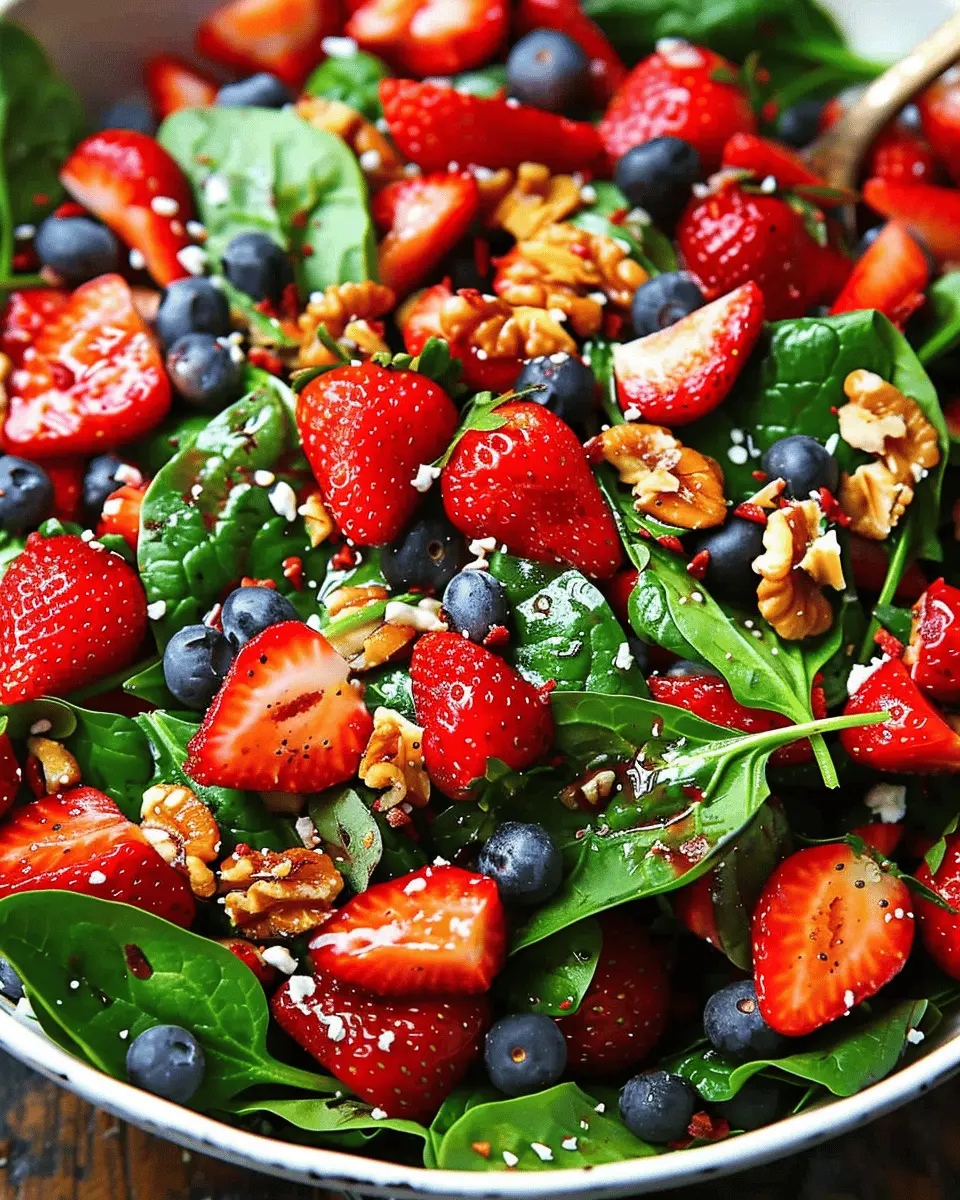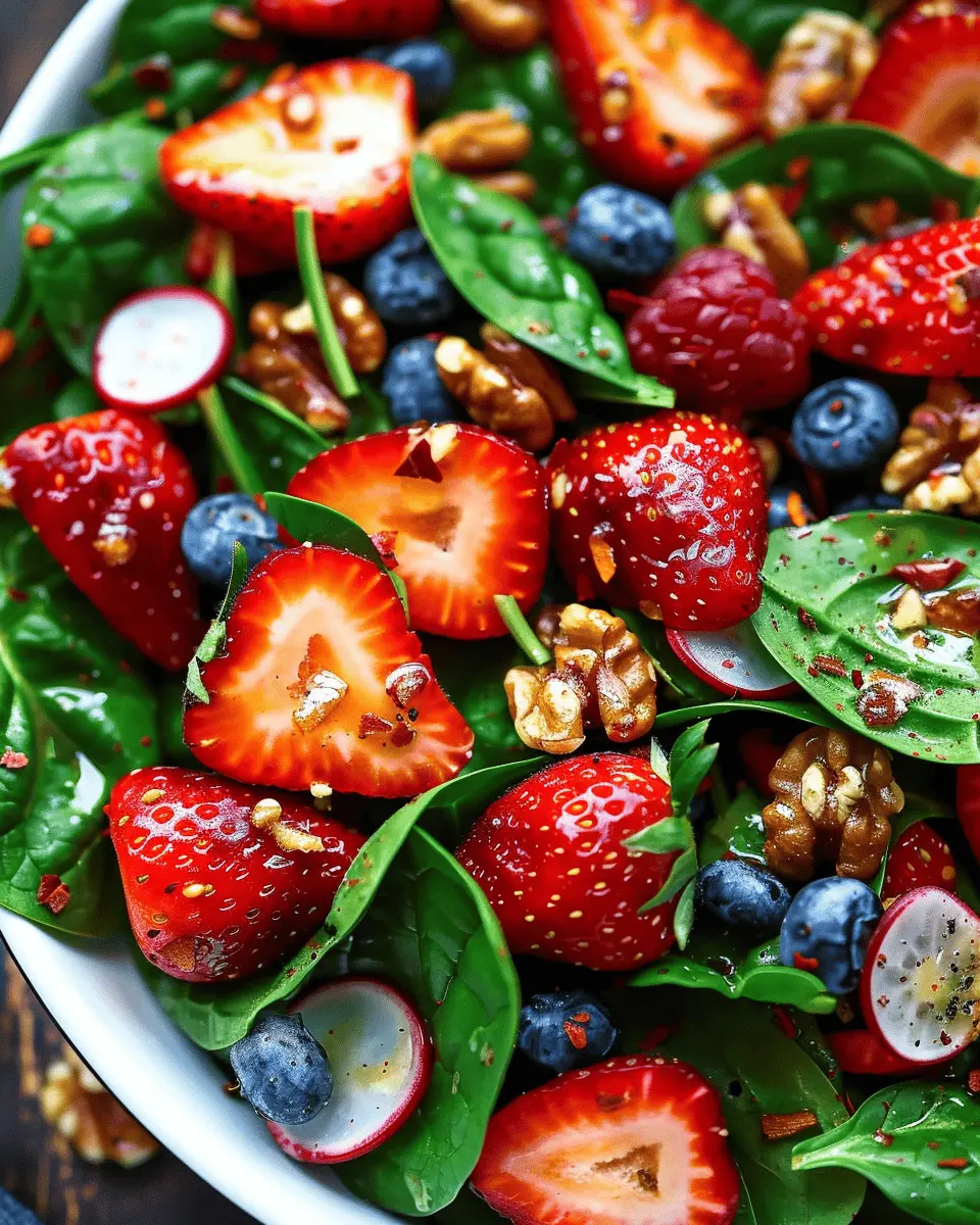 Aesthetic Appeal: Beyond health, presentation matters—this salad is a feast for the eyes. The vibrant colors of fresh spinach and juicy strawberries can make any meal feel special. Plus, there’s something uplifting about a bowl of freshness that just brightens your day!