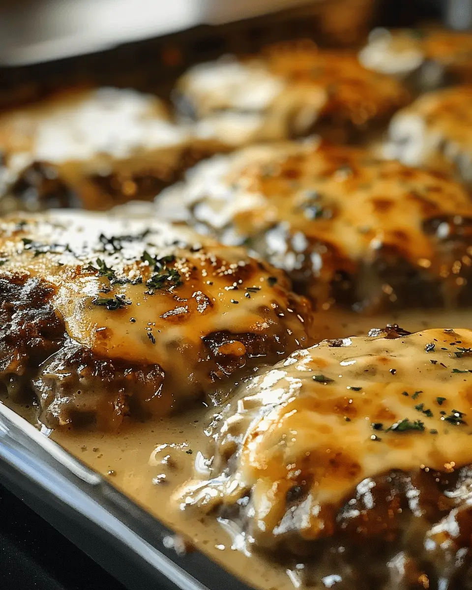 Preheat your oven to 350°F (175°C). Carefully place the browned patties back into the skillet, spooning the creamy gravy generously over the top. Make sure every patty is coated beautifully. This step is essential; it’s where the real magic happens.