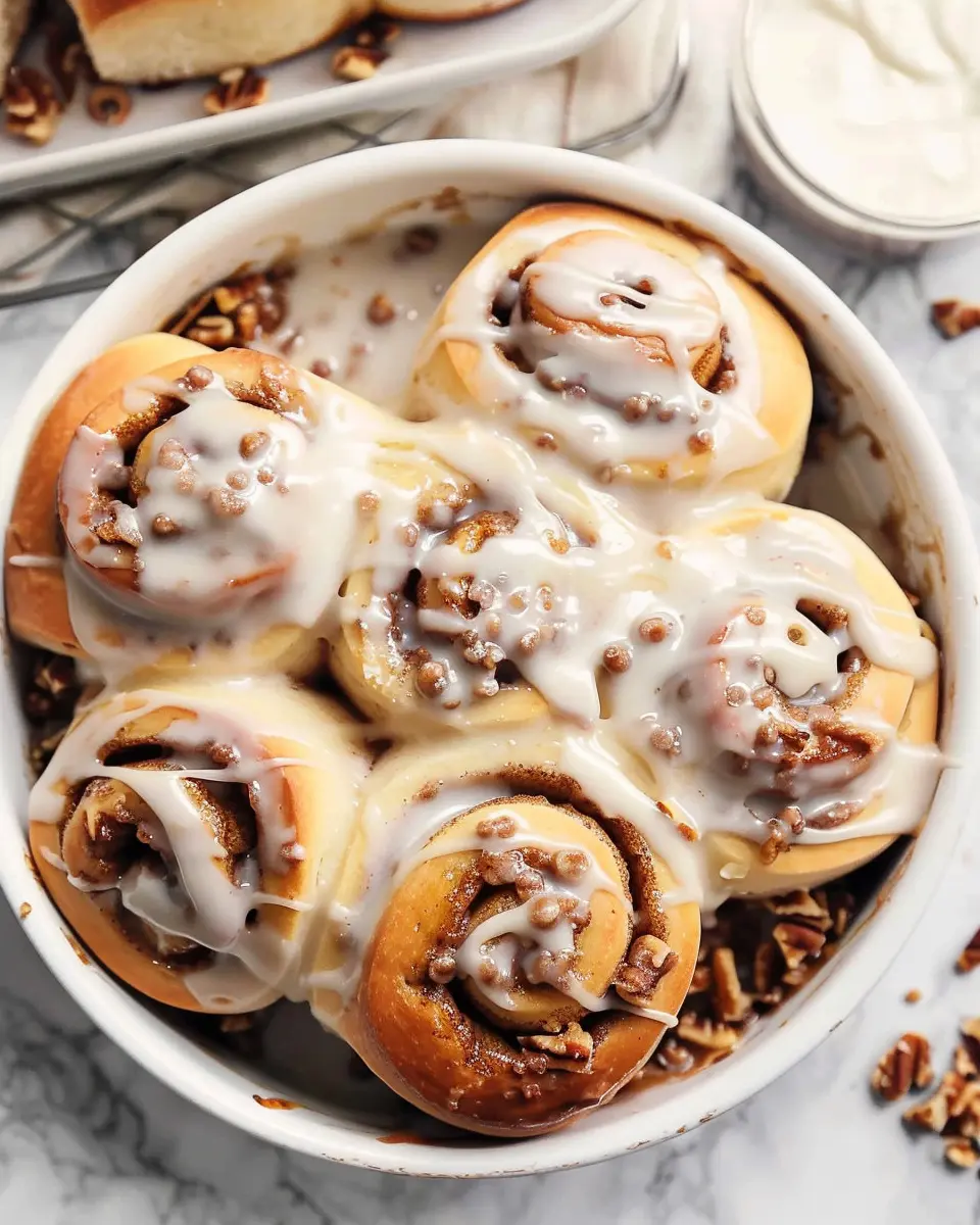 While the rolls are baking, it’s time to prepare the silky cream cheese icing. Blend together cream cheese, butter, powdered sugar, vanilla extract, and a pinch of salt until perfectly smooth. This icing adds that final touch of sweetness that makes these rolls irresistibly good.