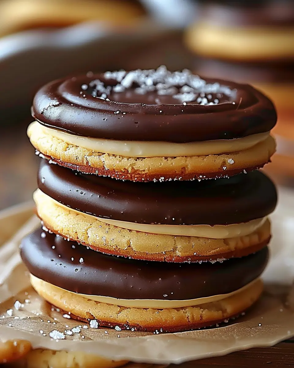 Finally, drizzle the melted chocolate glaze over your assembled cookies for that signature look and taste. You could use a spoon or even a piping bag for more precision. Allow the glaze to set before serving—if you can resist the temptation!