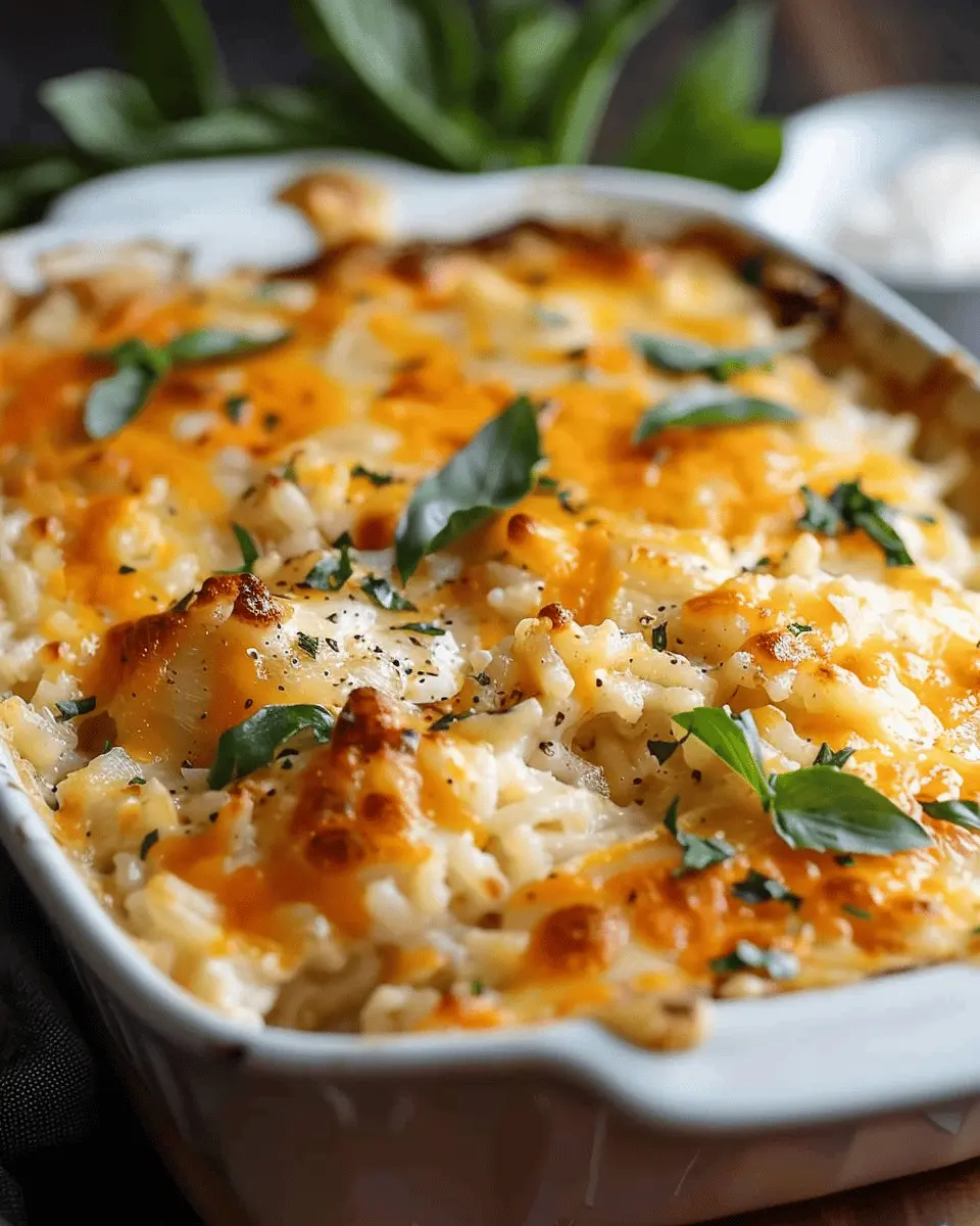 When you’re ready to dive into making your cheesy chicken and rice casserole, take a moment to prep your ingredients. Start by cooking the rice until it’s just tender; this ensures it absorbs all that cheesy goodness without becoming mushy. If you’re using chicken, opt for boneless, skinless pieces for easy cutting and even cooking. Don’t forget to chop your veggies finely for a more integrated flavor. And if you’re feeling adventurous, add some diced turkey bacon for that smoky twist!