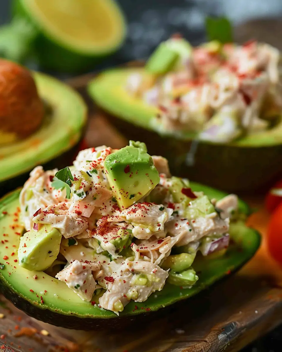 What’s even better? This meal is gorgeous enough to impress your friends but simple enough for a weeknight dinner. Grab those avocados, mix up your chicken salad, and you’ll have a meal ready in no time. Don’t forget, this dish is also great for meal prep; you can make the chicken salad ahead of time and stuff the avocados just before serving to keep everything fresh.