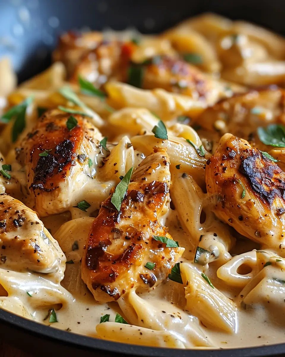• Toss Everything Together: Add the cooked pasta and the seasoned chicken back into the skillet with the cream sauce. Mix well to ensure everything is coated evenly.