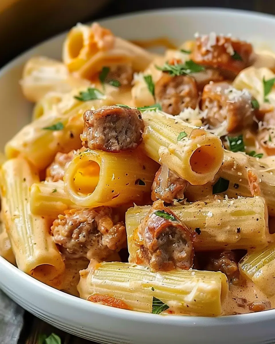 Keywords: Creamy Italian Sausage Rigatoni, pasta recipes, weeknight dinner