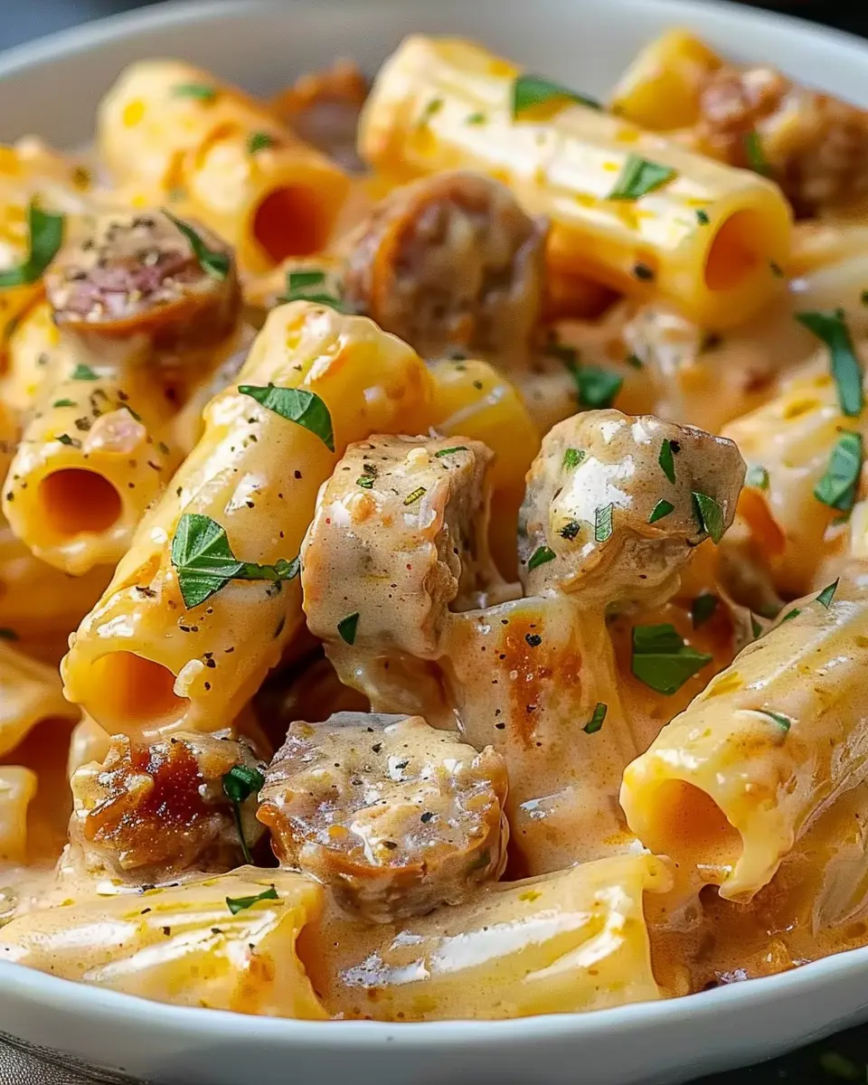 Keywords: Creamy Italian Sausage Rigatoni, easy pasta recipes, Italian dinner, cozy meals
