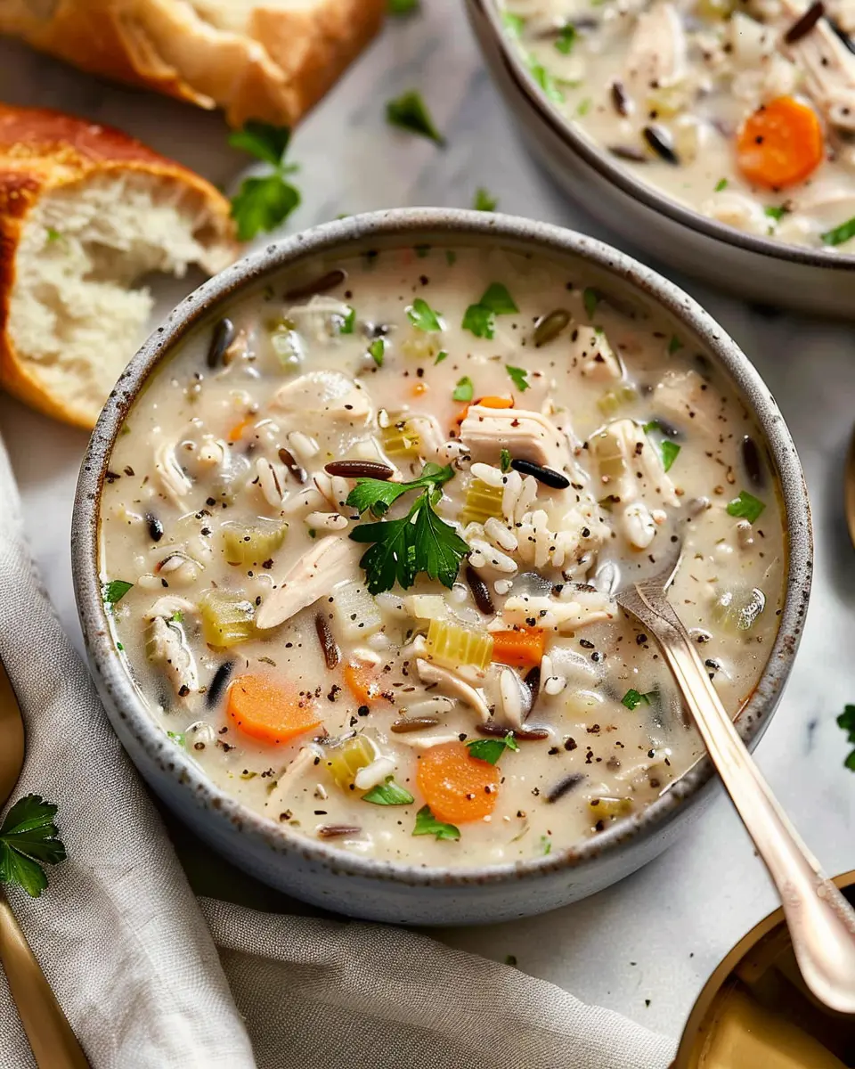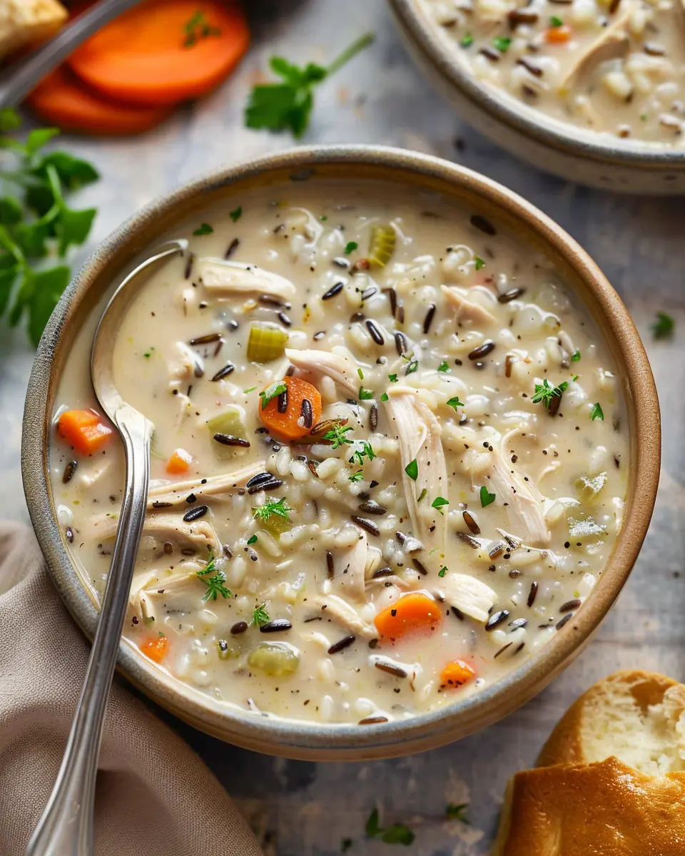 This creamy and hearty soup is perfect for chilly evenings, combining tender chicken and wholesome wild rice in a flavorful broth.