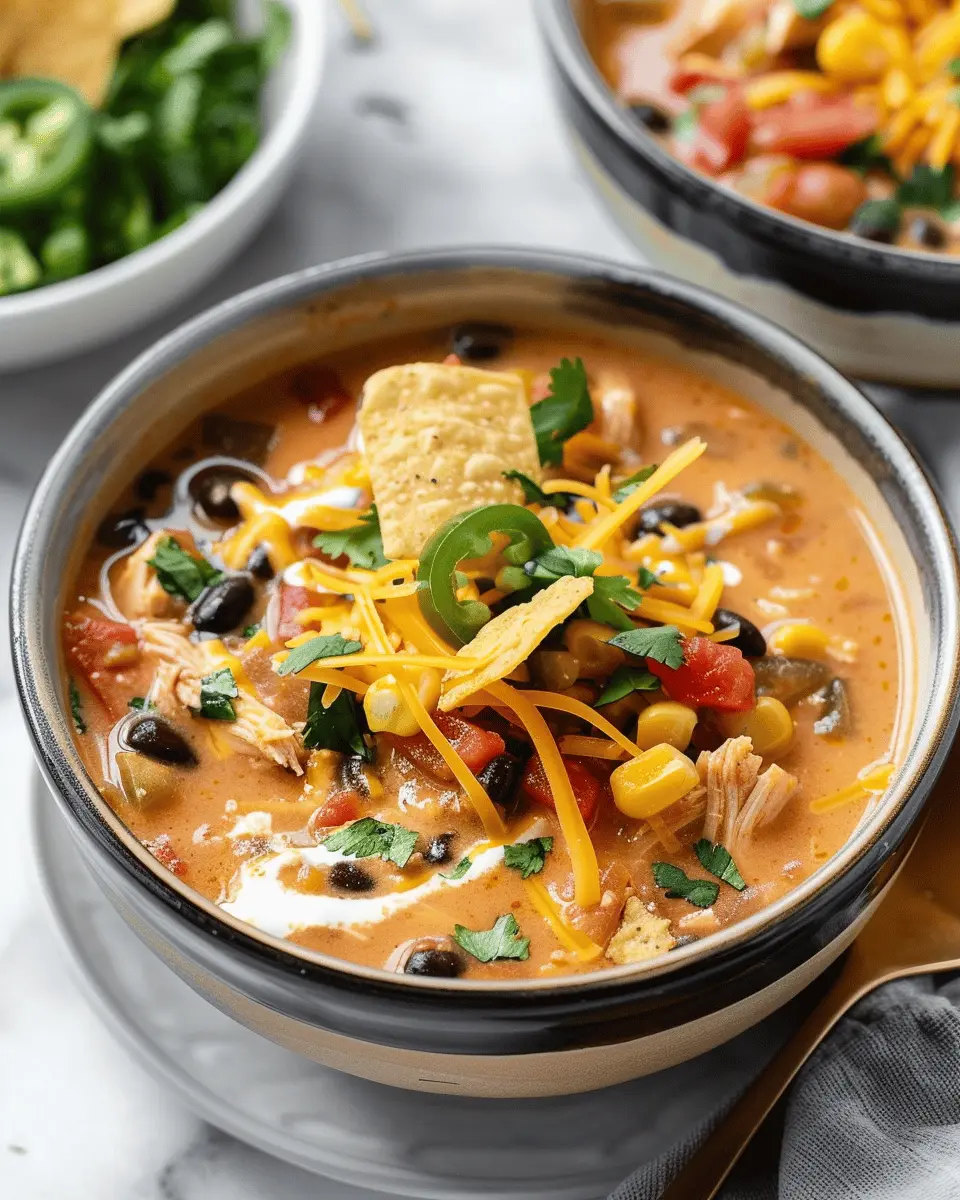 With all these steps complete, your easy chicken taco soup is ready to serve! Garnish with your favorite toppings such as shredded cheese, sour cream, or avocado slices. This soup is not just a meal; it’s an experience. So, gather your friends or family, and enjoy the comfort that comes in every spoonful!