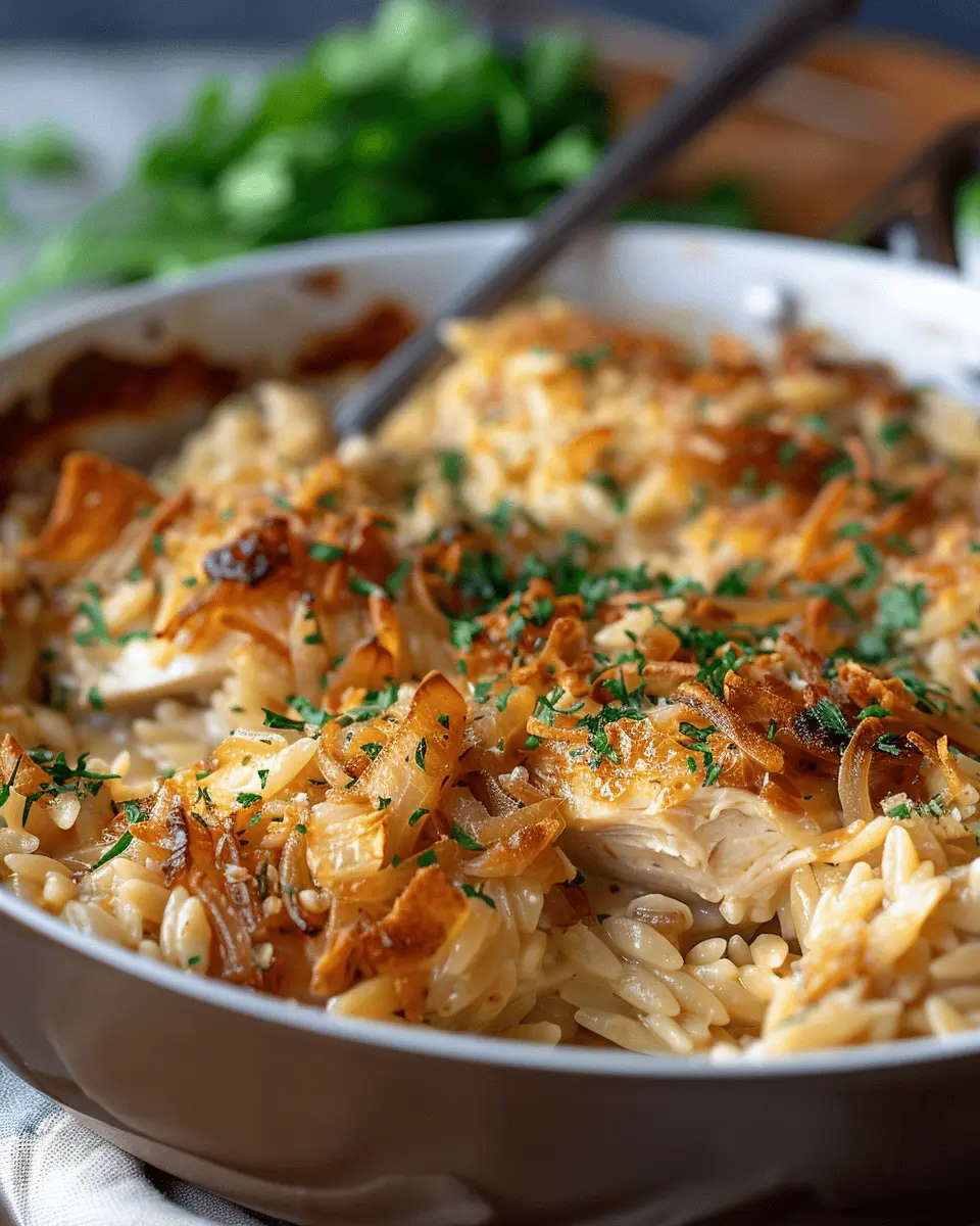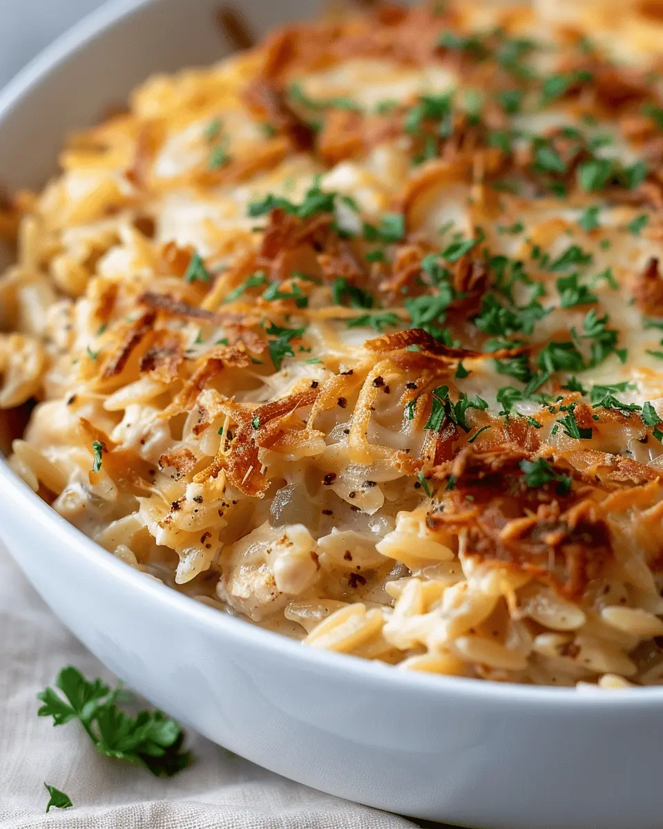 Introduction to French Onion Chicken Orzo Casserole