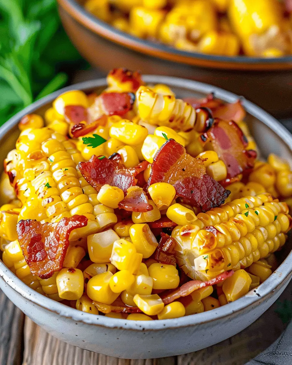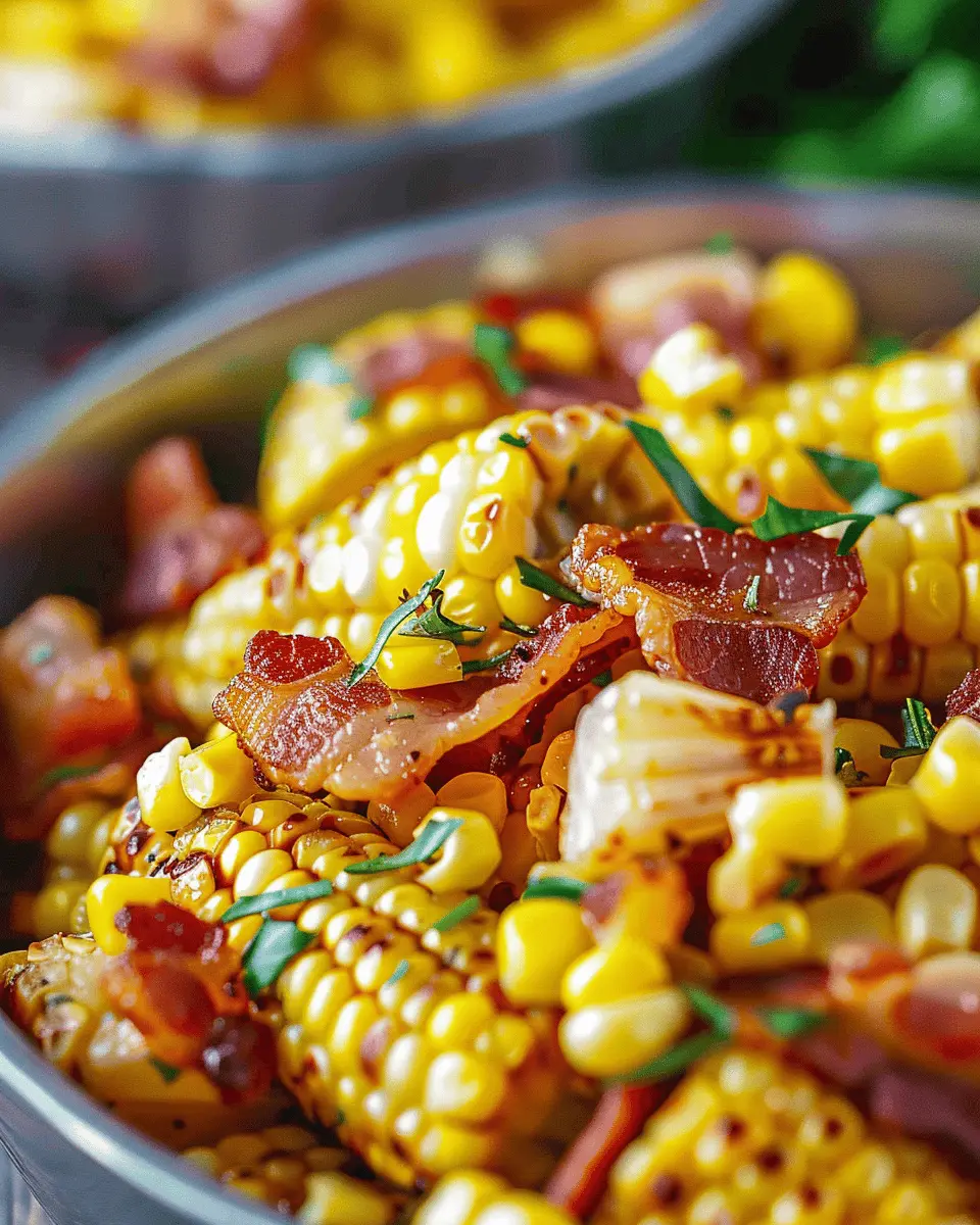 To keep things engaging at your dinner table, consider pairing this fresh corn and bacon side dish with grilled chicken or beef. For a touch of flair, serve it alongside a refreshing side salad. Enjoy this delicious recipe, and don’t forget to share with friends!