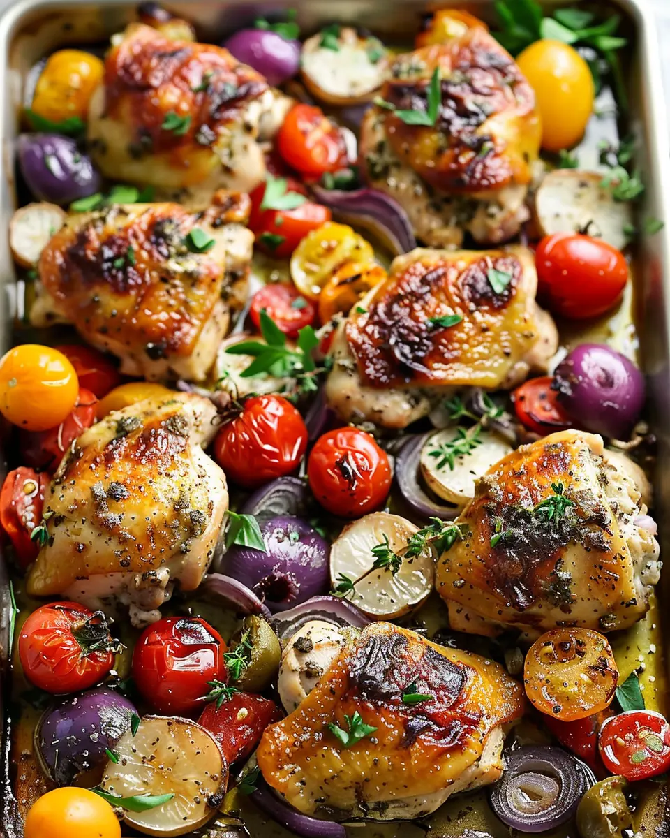 Each serving of Greek Sheet Pan Chicken packs approximately 350 calories. This makes it a surprisingly light yet satisfying option for dinner, especially after a long day.