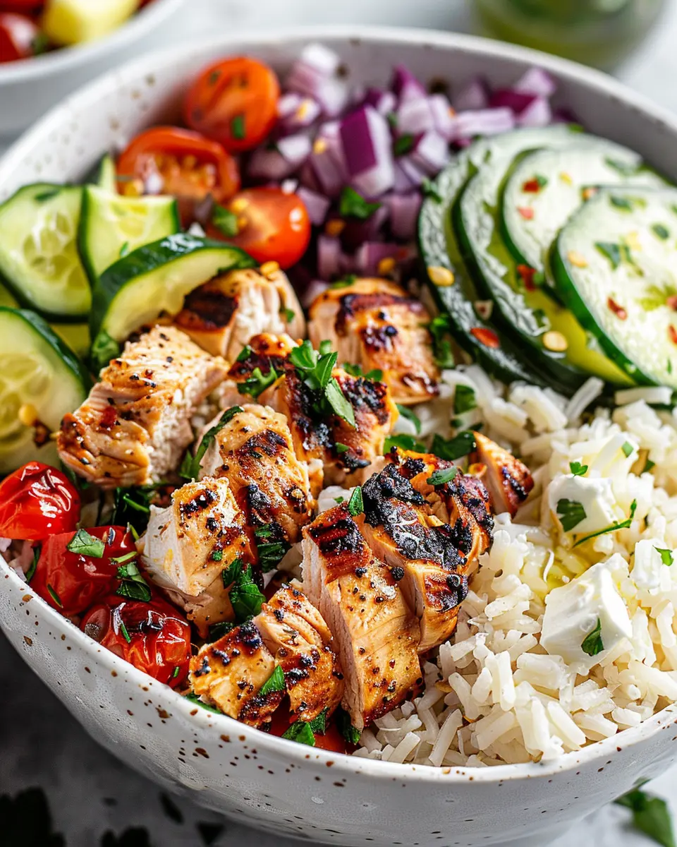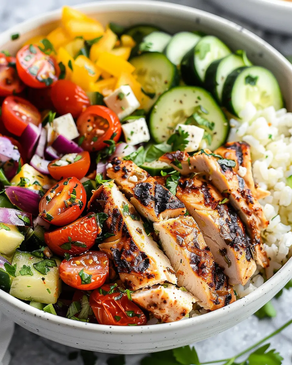 In summary, Healthy Greek Chicken Bowls are a delicious, nutritious solution for busy weeknights. With succulent chicken, fresh vegetables, and a zesty dressing, these bowls turn a simple meal into a vibrant experience. Not only are they packed with protein and fiber, but they also offer a variety of vitamins essential for a balanced diet.