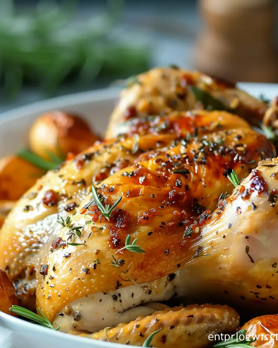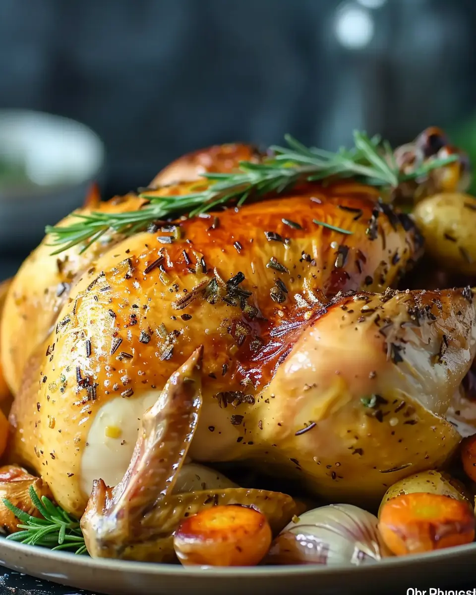 A delicious and succulent roast chicken infused with fresh herbs, perfect for family gatherings and celebrations.