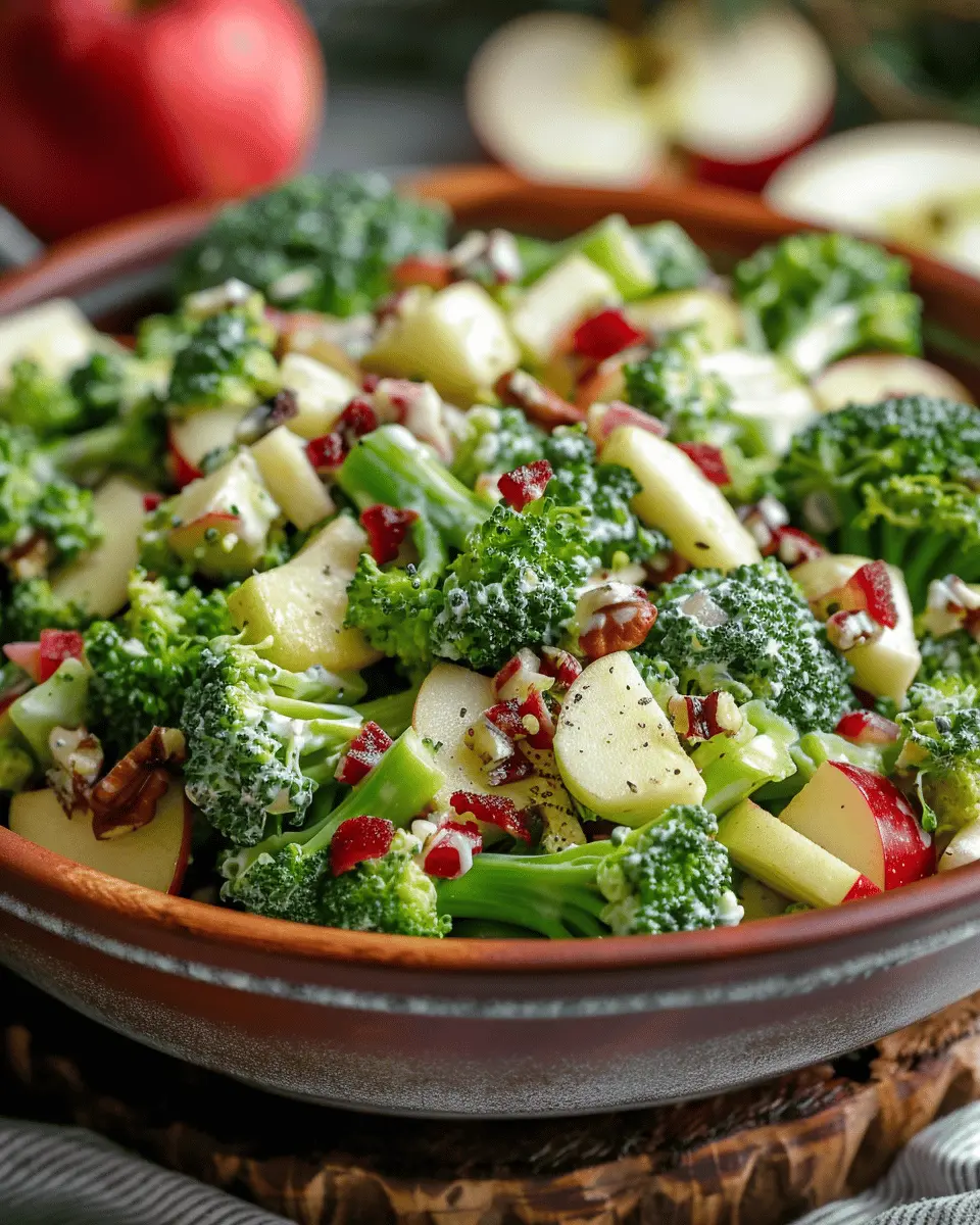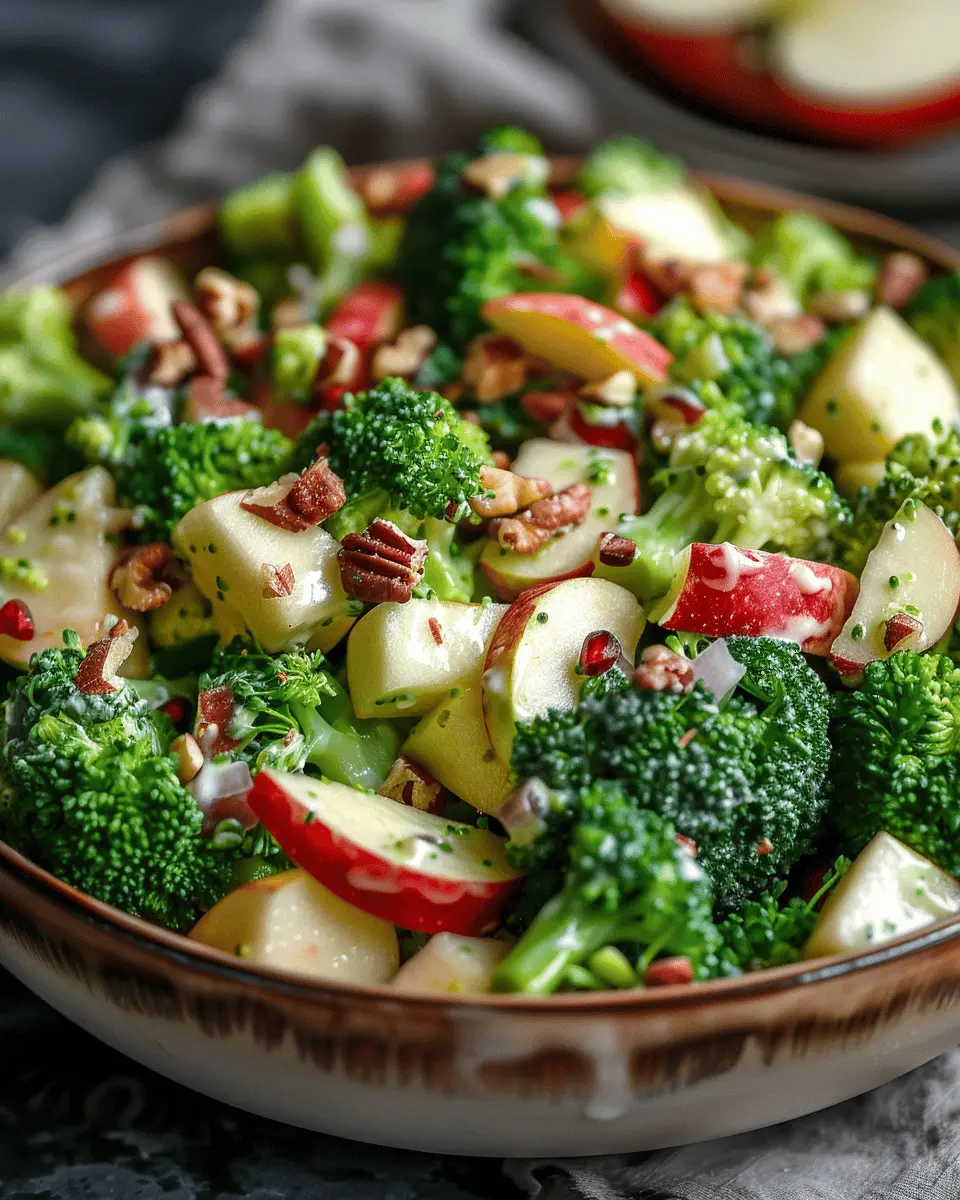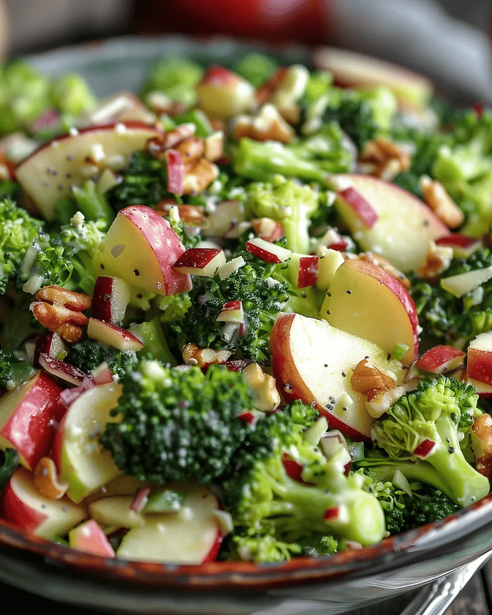 Imagine biting into a crisp Honeycrisp apple, bursting with juice and sweetness, paired with the satisfying crunch of fresh broccoli. This salad is a perfect marriage of flavors—you get the sweet, tangy notes from the apples, complemented by the earthy and nutty undertones of broccoli. It’s like a party for your palate!