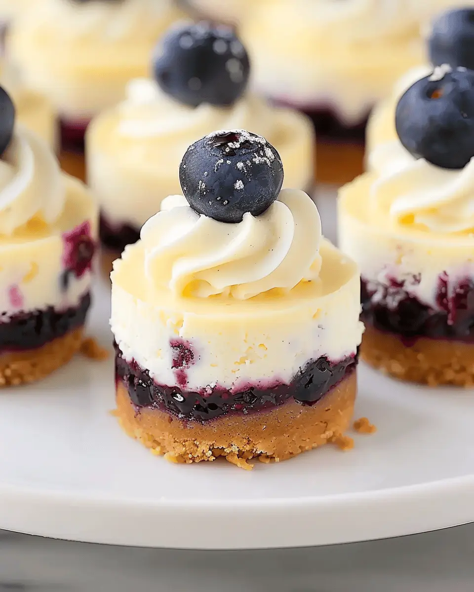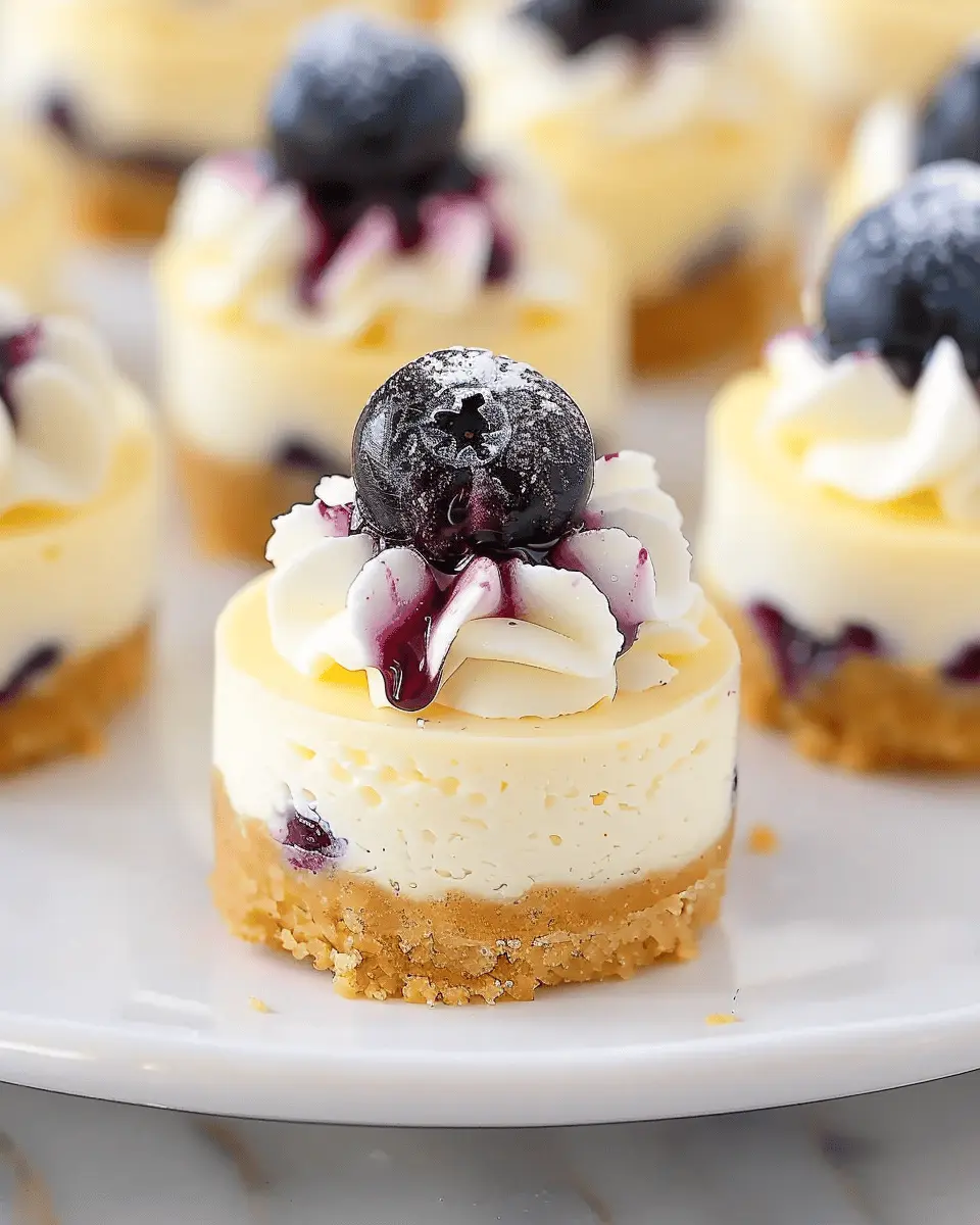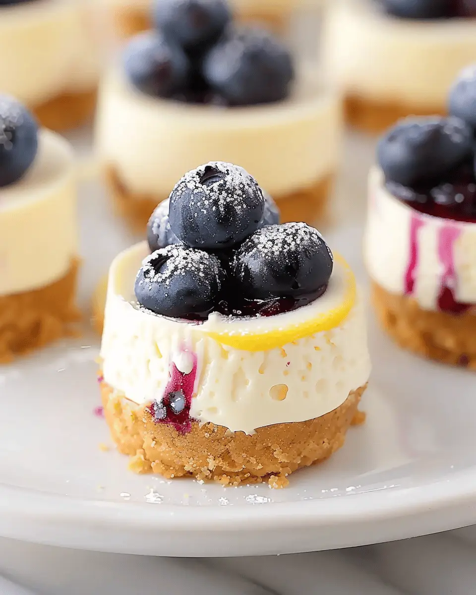 PrintJuicy Mini Lemon Blueberry Cheesecakes: A Delicious Homemade Treat