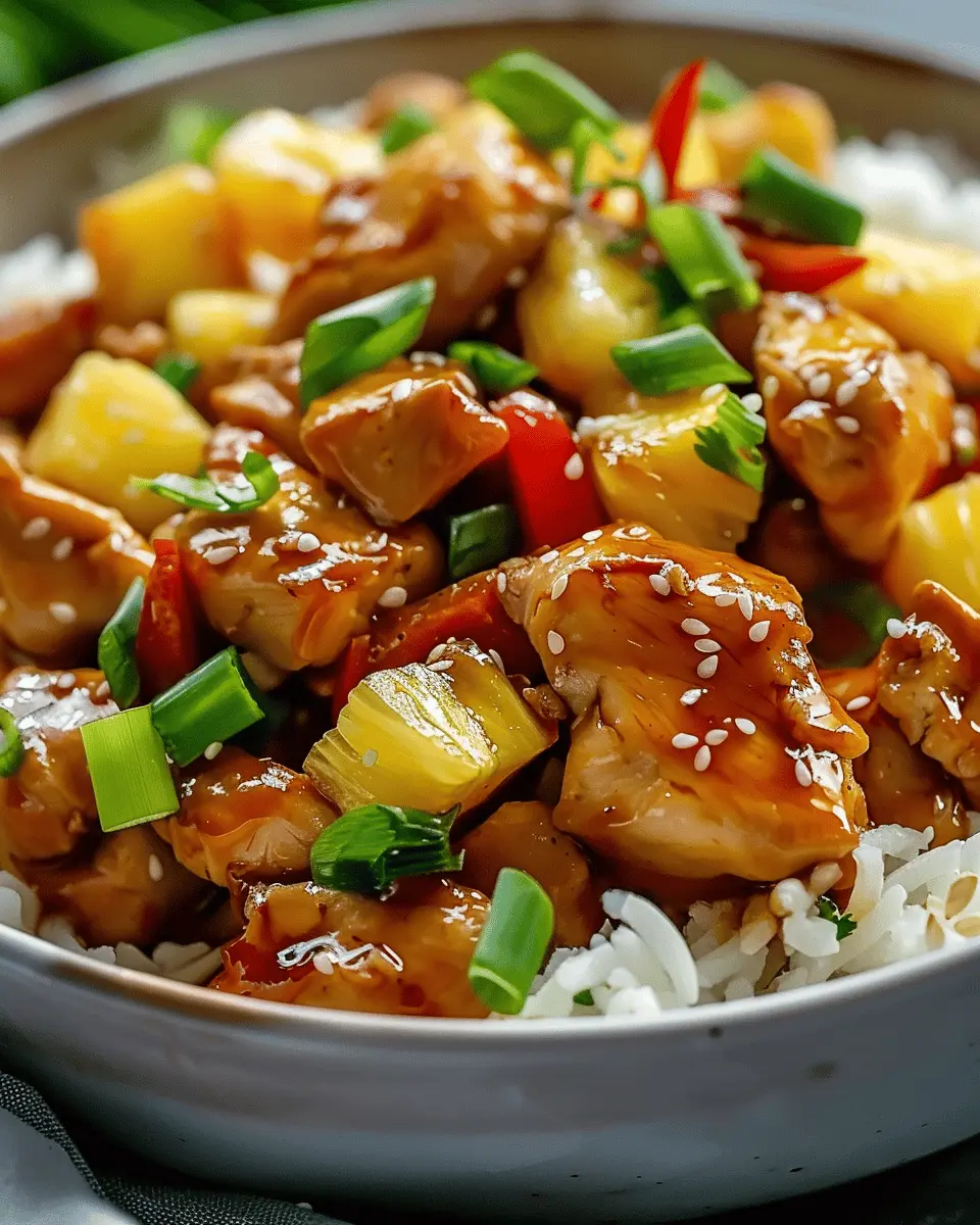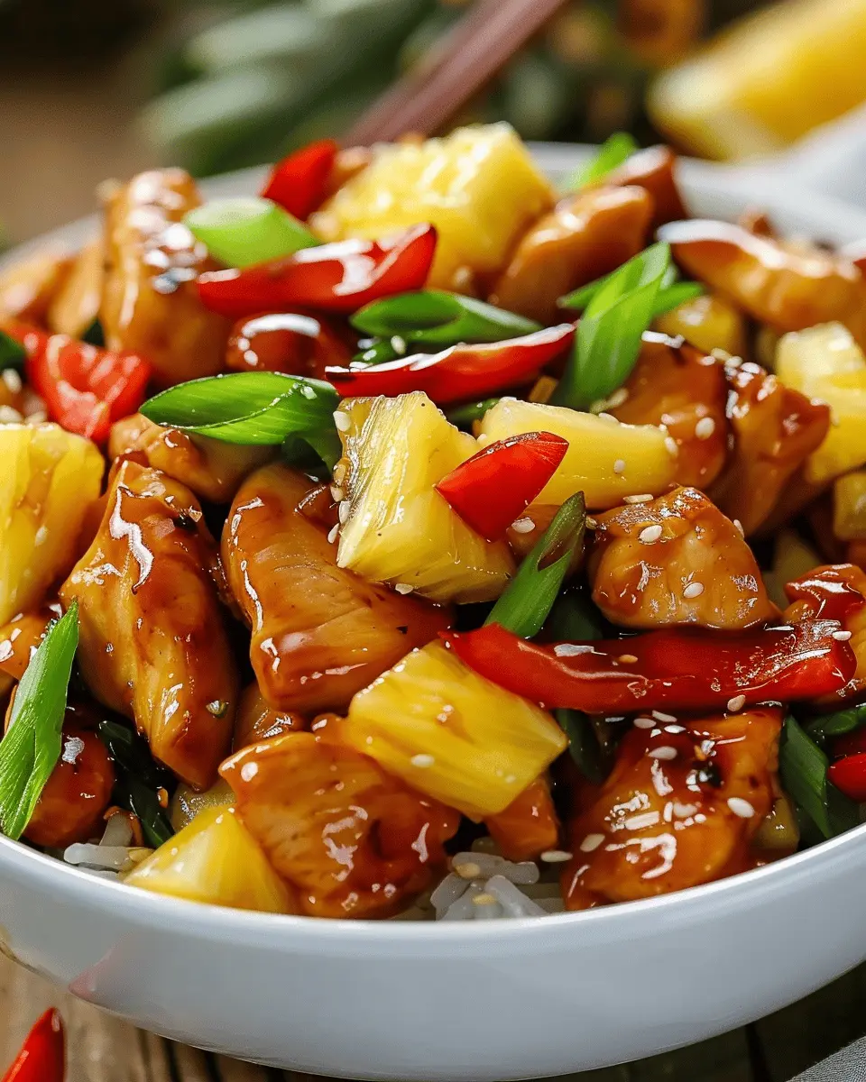 For a vegetarian option, try substituting chicken with tofu. It’s a protein-rich alternative that complements the sweet pineapple perfectly.