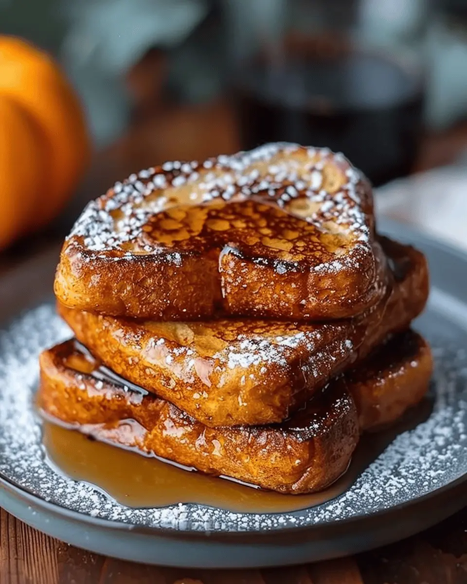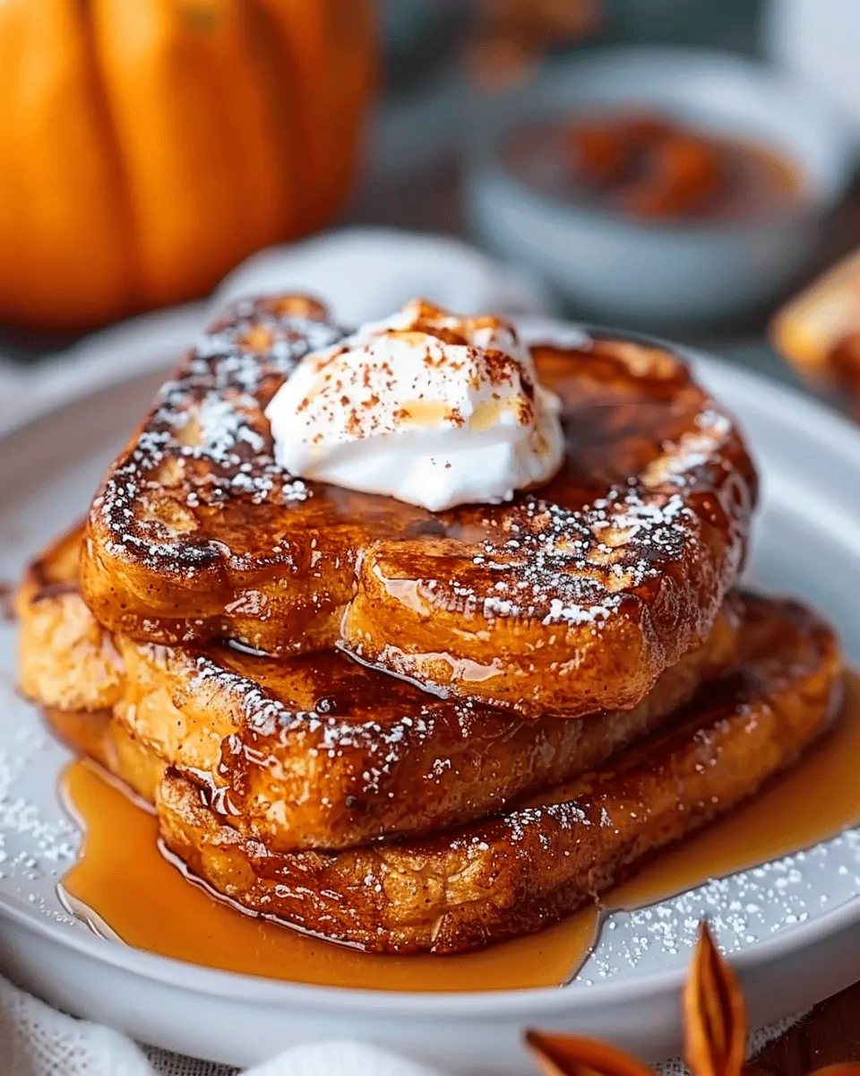 Enjoy a delicious fall-inspired breakfast with this Pumpkin French Toast recipe, perfect to start your day off right.