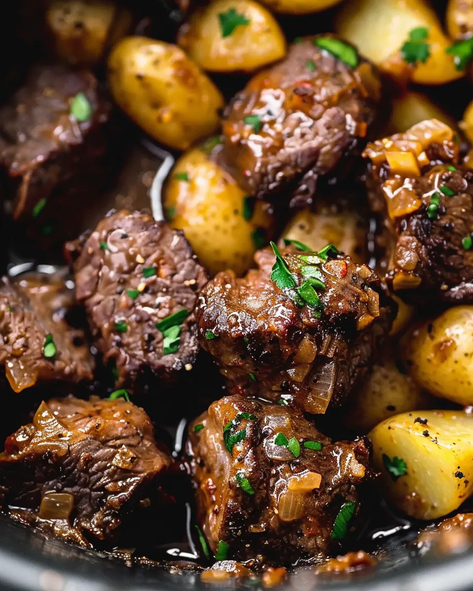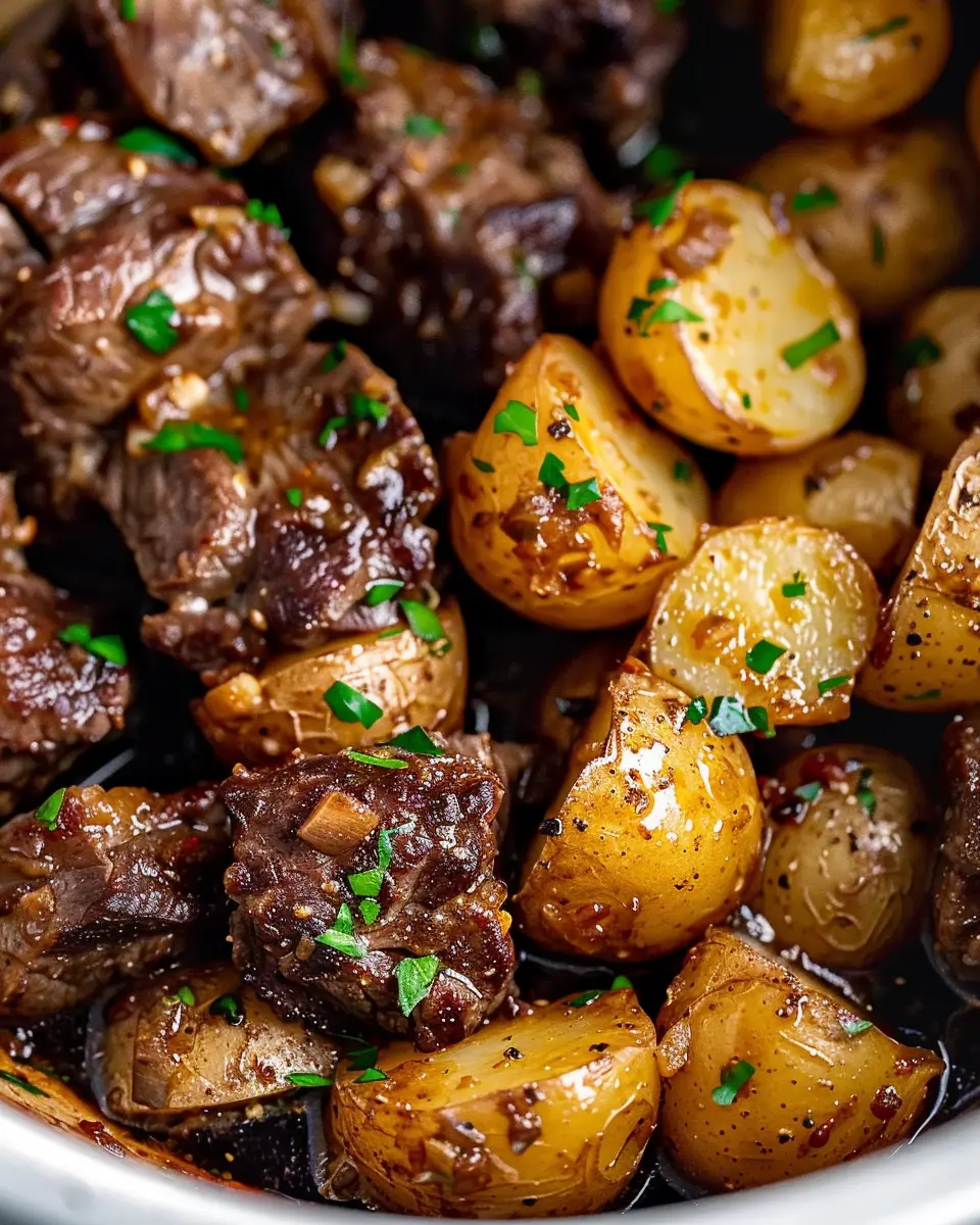 Indulge in the rich flavors of Slow Cooker Garlic Butter Beef Bites with Potatoes, a comforting and easy meal that everyone will love.