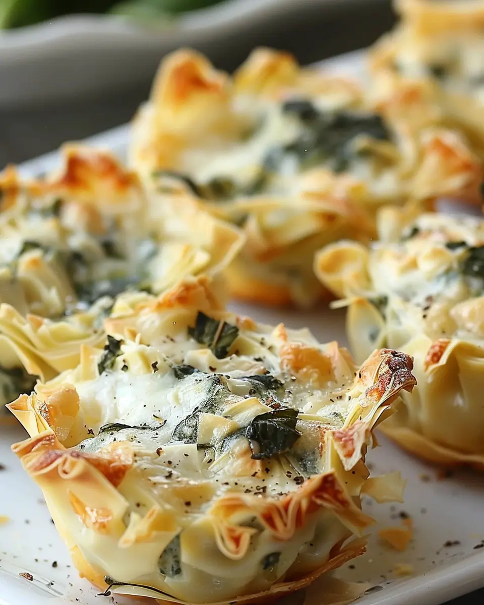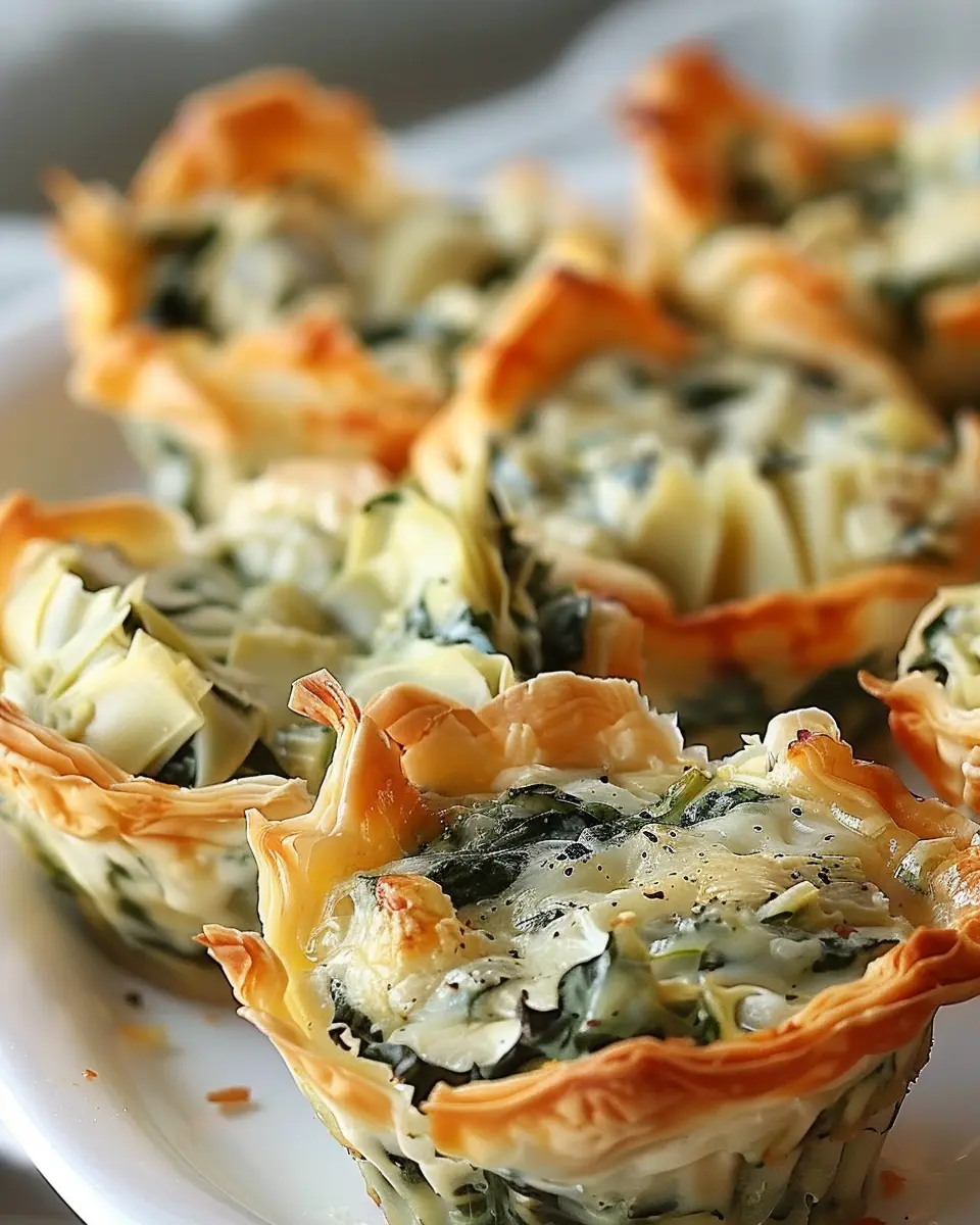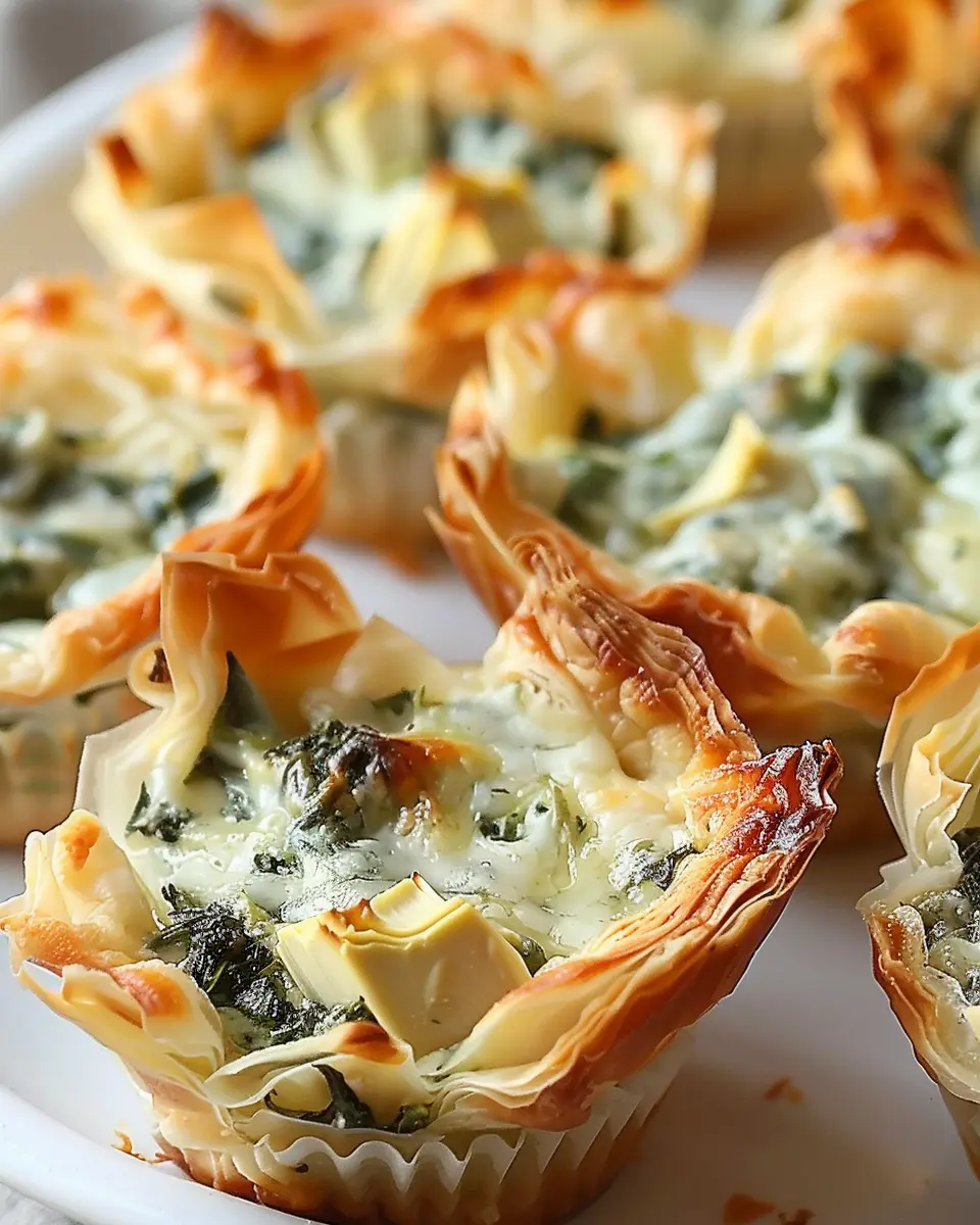 Delicious bite-sized spinach and artichoke dip cups that are perfect for any gathering.