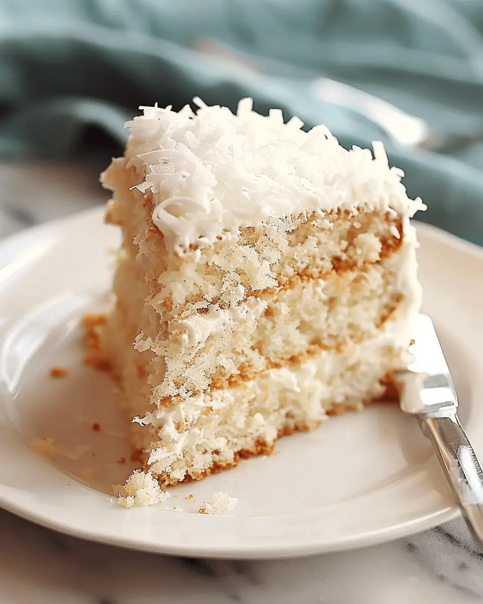 Treat yourself to a delicious slice of this classic coconut cake, perfect for any occasion!